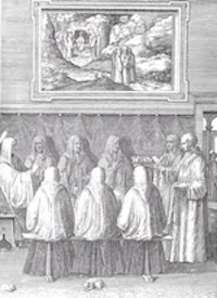 His sister, Scholastica, a nun, used to come to see him once a year. The man of God would come down to see her in a house owned by the monastery not far from the gate. On this one occasion they spent the whole day in praise of God and pious conversation. When night shadows were already falling, they took a meal together. The hour grew late and they still sat conversing of holy things. Then his sister, the nun, said: “I beg you, do not leave me tonight. Let us speak til morning of the joys of the heavenly life!” “What are you saying, sister,” he replied, “There is no way I can remain outside the monastery!”